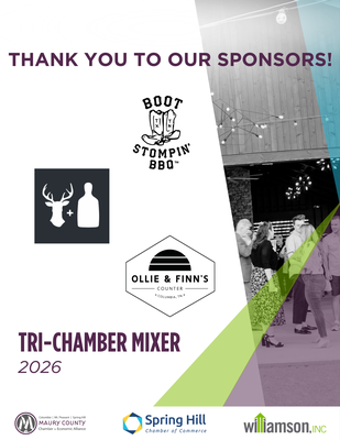 You are invited to the 2026 Annual Tri-Chamber Mixer, co-hosted by Maury Alliance, Spring Hill Chamber, and Williamson Inc.